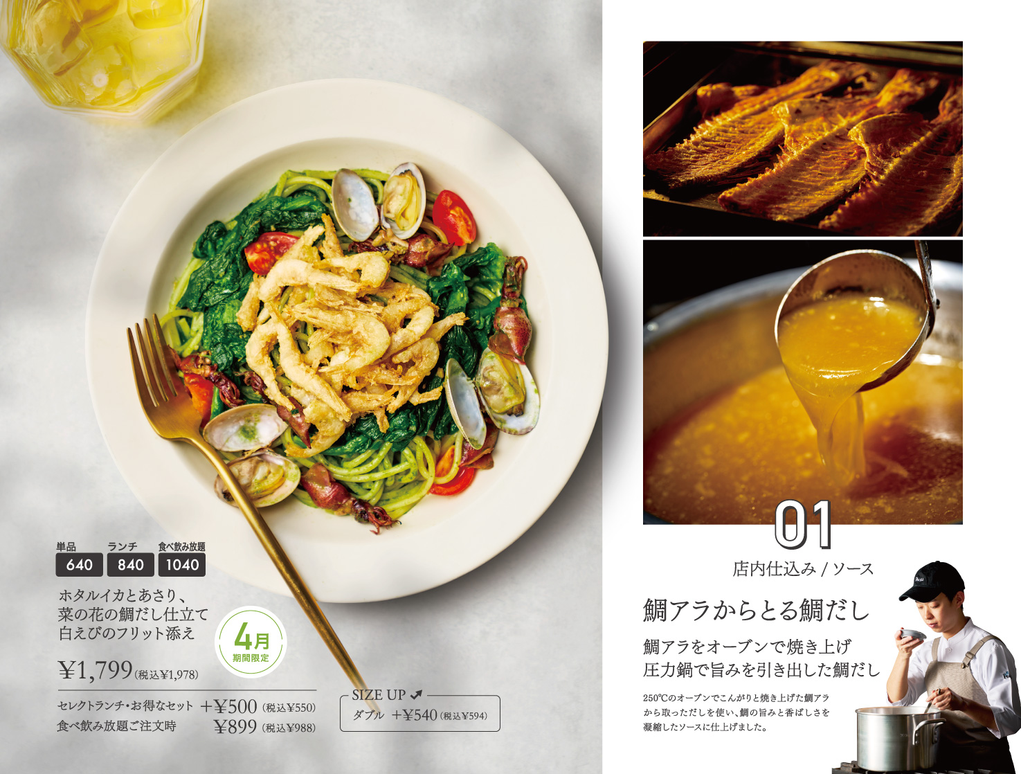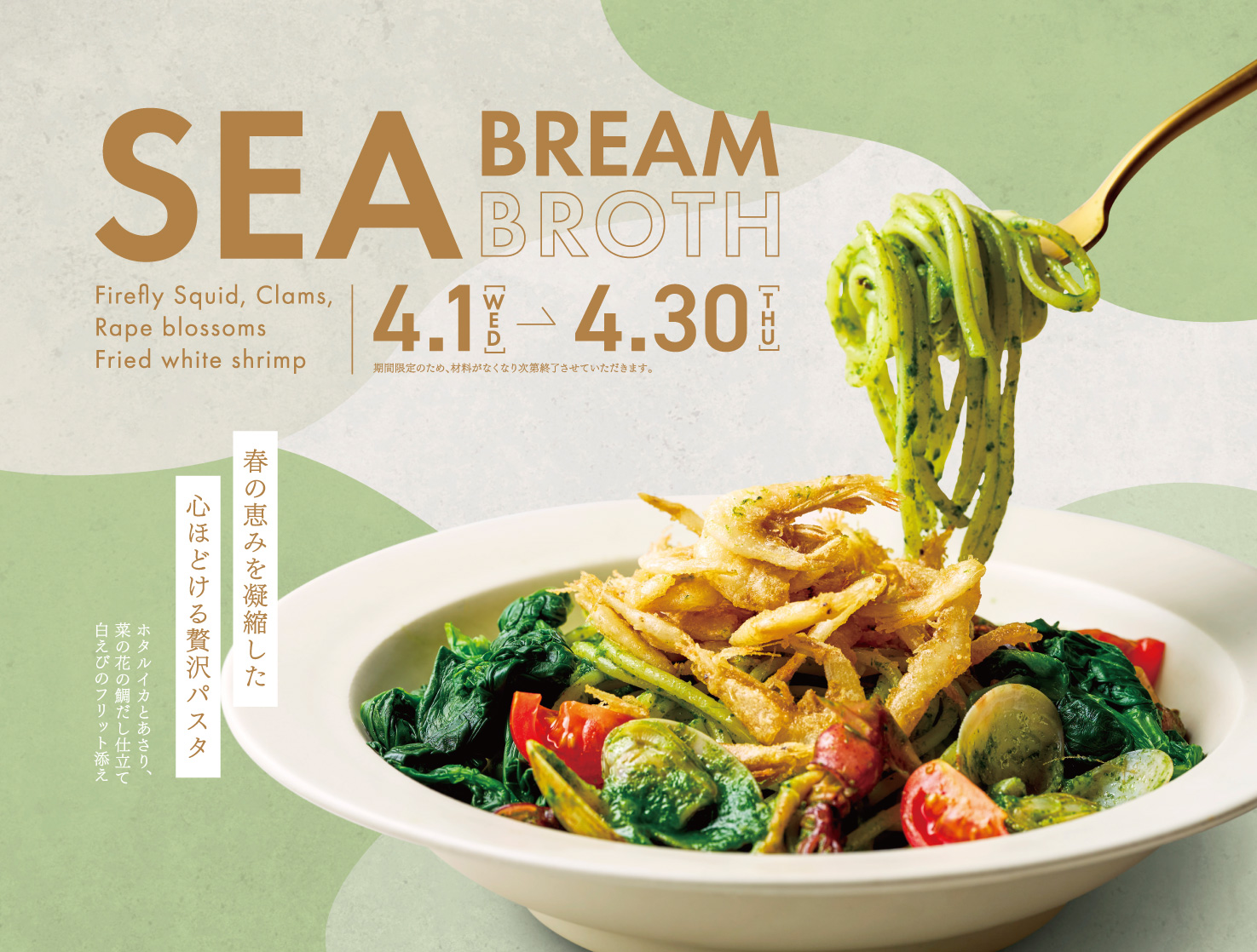 2026年4月1日よりホタルイカとあさり、菜の花のパスタが販売開始!