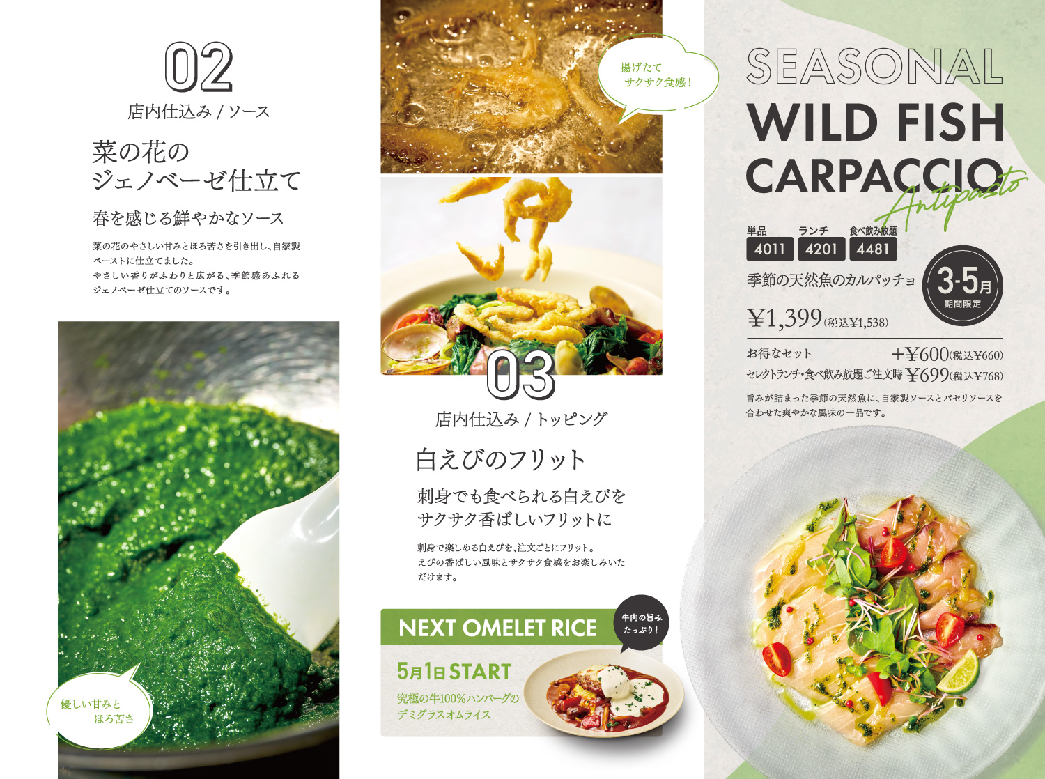 サクッとした甘みのある白エビのフリットが美味しさを引き立てます。4月下旬までの限定販売、材料がなくなり次第終了いたします。